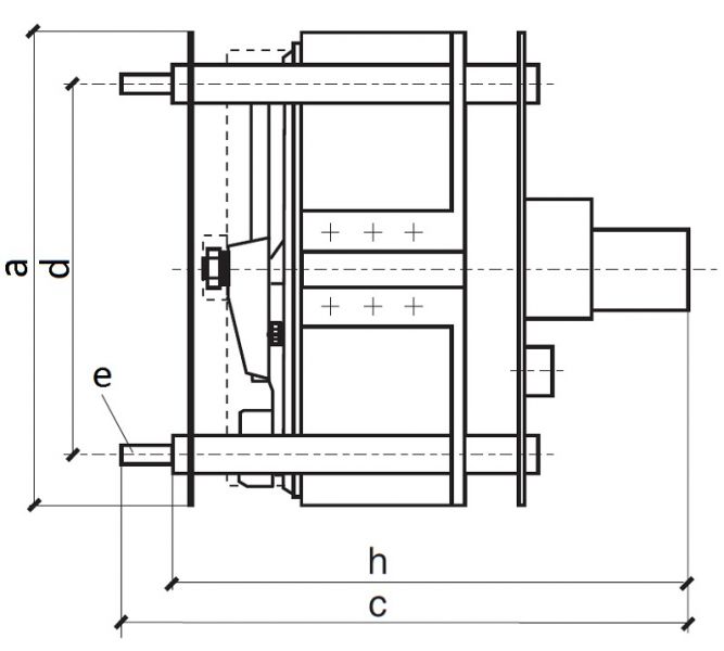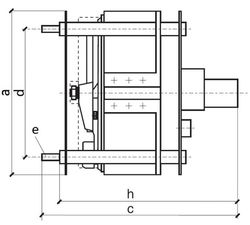 | Typ | a in mm | c in mm AC-Motor | c in mm DC-Motor | d in mm | h in mm AC-Motor | h in mm DC-Motor | e in mm | kg |