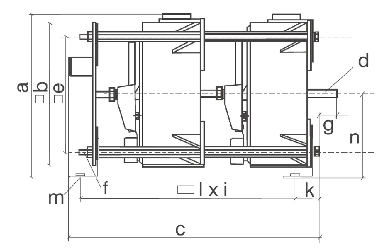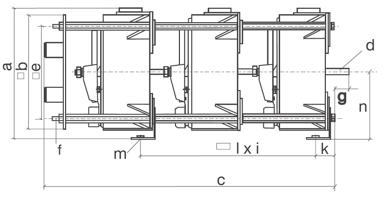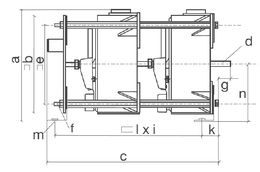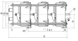 | Typ | a in mm | b in mm | c in mm | d in mm | e in mm | f in mm | g in mm | i in mm | k in mm | l in mm | m in mm | n in mm | Masse in kg | |