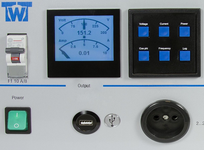 - Anzeige: Spannung, Strom, Frequenz, Leistung, Phasenverschiebung